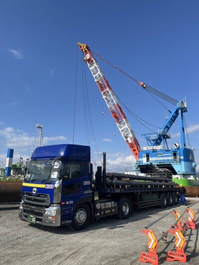 となりに置いてある丸い鋼材も船に積み込むとのこと。