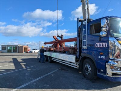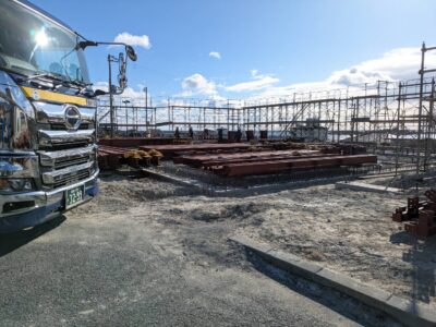 またこちらも大きな鉄骨の配達ですね