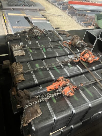 締め機をたくさん使って動かないように積んでいきます!