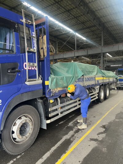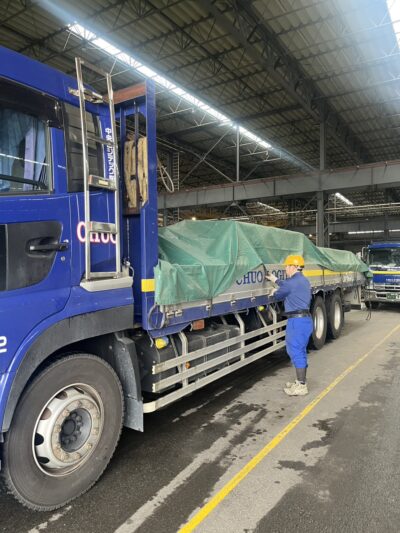 今回は製品の積込からシート掛け作業の紹介です。