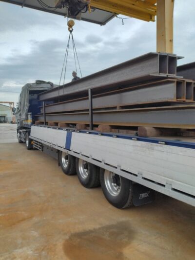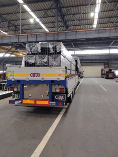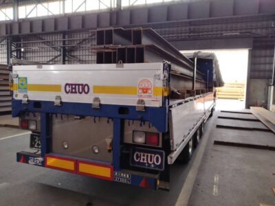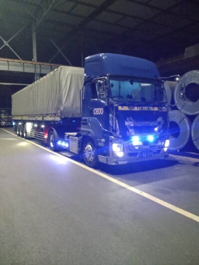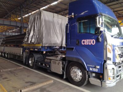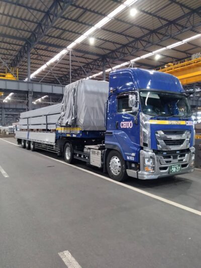 この車両で行う運行では、画像のH鋼や角パイプ・C型鋼等、長さも決まっている荷物のため